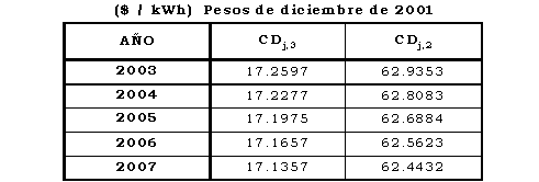 -Cargo de transición para el primer mes de aplicación del Cargo Máximo de Nivel de Tensión 2 aprobado en esta Resolución: 49.2647 $/kWh (pesos de diciembre de 2001).