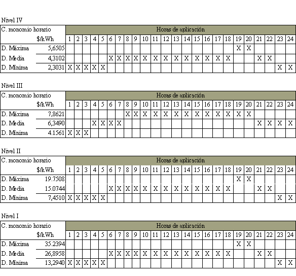 Artículo 2o. Cargos monomios horarios. Los cargos monomios horarios por uso del Sistema de Transmisión Regional y/o Distribución Local operado por las Empresas Públicas de Medellín, serán los siguientes, a pesos de diciembre de 1996:
