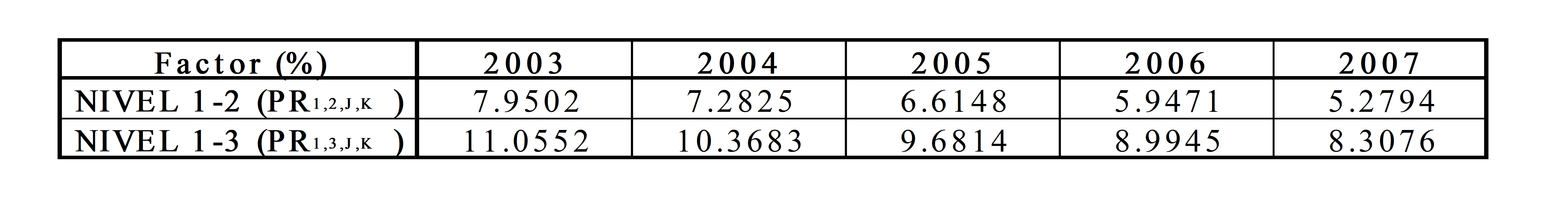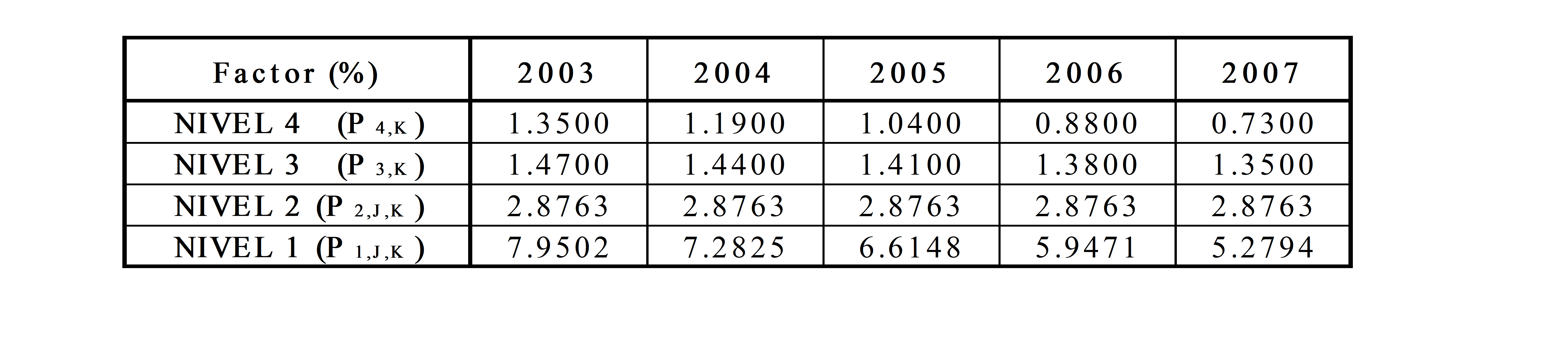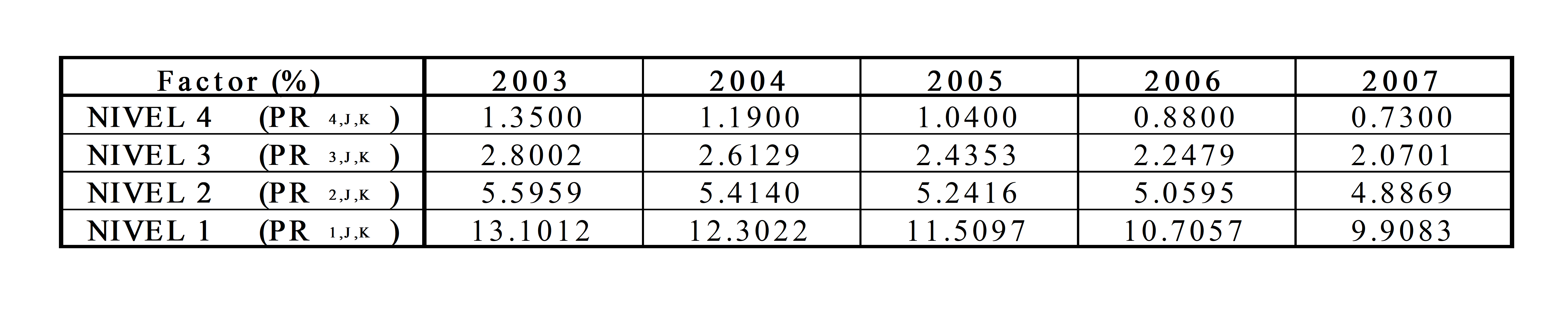PARÁGRAFO. Los factores de que trata el presente artículo, se aplicarán de acuerdo con la siguiente expresión: