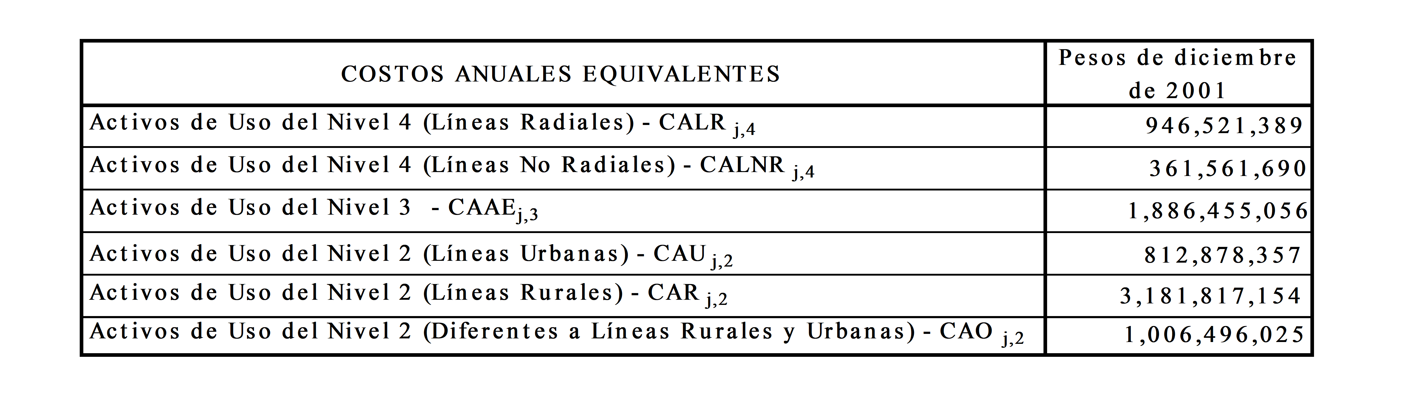 b) Costo Anual para remunerar los activos de los Niveles de Tensión 4, 3 y 2, aplicando los criterios de eficiencia de que trata el Anexo No 8 de la Resolución CREG 082 de 2002 y los aprobados mediante Resolución CREG 030 de 2003:
