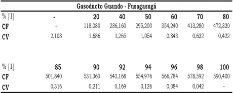 | Gasoducto | Cargo Fijo ($/kpcd-año) |