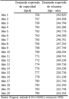 Mediante la Comunicación S-2014-001486 del 21 de marzo de 2014 el Director Ejecutivo de la Comisión le solicitó a Progasur revisar la demanda esperada de capacidad frente las cifras históricas publicadas por la empresa en el Boletín Electrónico de Operaciones, BEO.