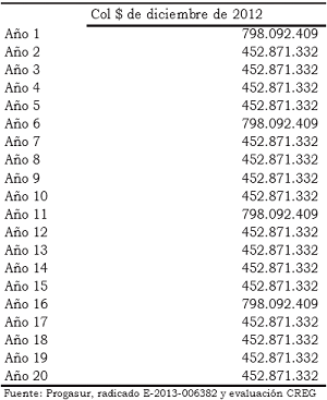 Mediante la Comunicación S-2014-001003, de fecha 4 de marzo de 2014, la CREG requirió a Progasur algunas aclaraciones sobre la inversión que presentó dentro de la categoría del programa de nuevas inversiones para el período tarifario t, así como información sobre garantías o contratos de seguro que cubran o amparen eventos que sucedan a partir de la entrada en operación del gasoducto.