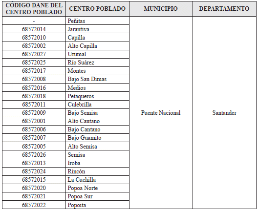 La empresa Promesa S.A. E.S.P., manifiesta, mediante oficio con radicado CREG E-2017-006653 de julio 14 de 2017, que el sistema de distribución del mercado relevante compuesto por los centros poblados de Peñitas, Jarantiva, Capilla, Alto Capilla, Urumal, Alto Cantano, Bajo Cantano, Bajo Guamito, Río Suárez, Montes, Bajo San Dimas, Medios, Petaqueros, Culebrilla, Bajo Semisa, Alto Semisa, Semisa, Iroba, Rincón, Cuchilla, Popoa Norte, Popoa Sur y Popoita, departamento de Santander, se conecta al sistema de distribución del municipio de Puente Nacional, el cual forma parte del mercado aprobado mediante Resolución CREG 029 de 2004 y está conformado por el municipio de Puente Nacional en el departamento del Santander.