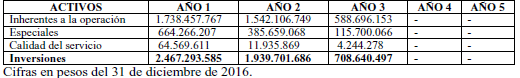 Teniendo en cuenta que la solicitud comprende la inclusión de municipios nuevos o que corresponde a un mercado nuevo la empresa reporta el siguiente programa de inversiones.