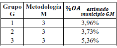 Porcentaje de Otros Activos asignado para el municipio p según la clasificación dada grupo G y considerando la metodología M correspondiente a 3 conforme a la siguiente tabla:![]() Para los centros poblados pertenecientes a un municipio p con prestación del servicio en la cabecera municipal se mantiene el grupo G del municipio, cambiando la clasificación de metodología M 1 o 2 a metodología 3. |