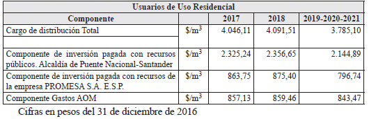 Por la cual se aprueba cargo de distribución transitorio por uso del sistema de distribución de gas combustible por redes de tubería para el mercado relevante especial conformado por los centros poblados de Peñitas, Jarantiva, Capilla, Alto Capilla, Urumal, Alto Cantano, Bajo Cantano, Bajo Guamito, río Suárez, Montes, Bajo San Dimas, Medios, Petaqueros, Culebrilla, Bajo Semisa, Alto Semisa, Semisa, Iroba, Rincón, Cuchilla, Popoa Norte, Popoa Sur y Popoita, perteneciente al municipio de Puente Nacional, departamento de Santander, según solicitud tarifaria presentada por la empresa Promesa S.A. E.S.P.