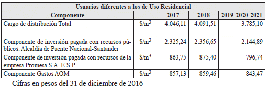Dado que el sistema de distribución presentado por la empresa Promesa S.A. E.S.P. para el mercado relevante especial conformado por los centros poblados de Peñitas, Jarantiva, Capilla, Alto Capilla, Urumal, Alto Cantano, Bajo Cantano, Bajo Guamito, Río Suárez, Montes, Bajo San Dimas, Medios, Petaqueros, Culebrilla, Bajo Semisa, Alto Semisa, Semisa, Iroba, Rincón, Cuchilla, Popoa Norte, Popoa Sur y Popoita, perteneciente al municipio de Puente Nacional, departamento de Santander, cuenta con red primaria y secundaria y todos sus usuarios están conectados a la red secundaria, se podrá determinar para este mercado relevante un solo cargo de distribución que será aplicable a los usuarios de uso residencial y usuarios diferentes al uso residencial.