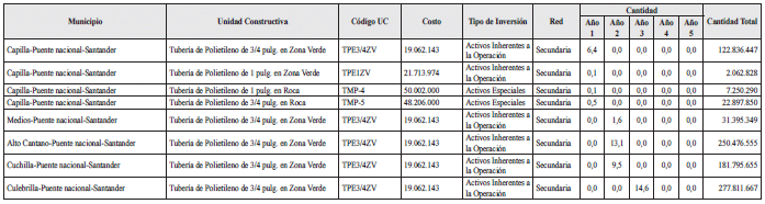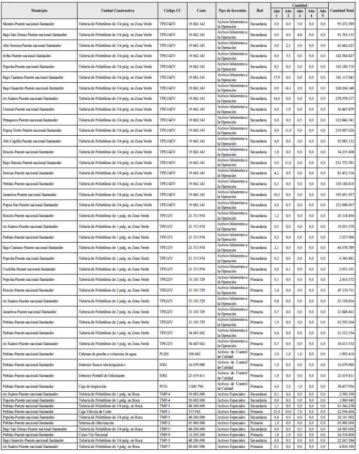 En la mencionada comunicación se allegaron los datos de demanda, gastos de administración operación y mantenimiento AOM y las inversiones clasificadas según el listado de unidades constructivas establecido en el Anexo número 8 de la Resolución CREG 202 de 2013.