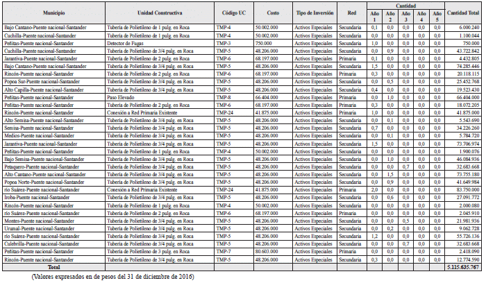3.1. Programa de Nuevas Inversiones para Municipios Nuevos (INPI). El Programa de Nuevas Inversiones corresponde a un valor de $5.115.635.767 ($ 31 de diciembre de 2016) y su descripción se presenta en el Anexo 1 de la presente resolución.