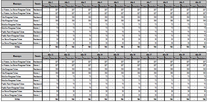 - Reporte de usuarios y demanda de cada uno de los centros poblados discriminada por tipo de usuario.