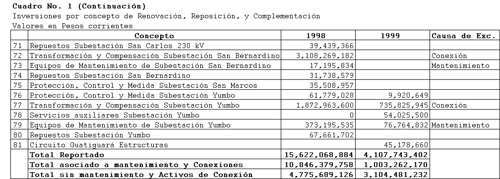 De otra parte ISA reporta, inversiones relacionadas con los servicios de conexión que no hacen parte del STN, que también se excluyen.