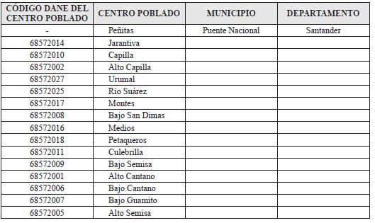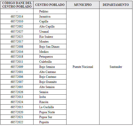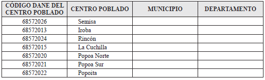 ARTÍCULO 1o. MERCADOS RELEVANTES DE COMERCIALIZACIÓN. Conforme a lo definido en la Resolución CREG 011 de 2003, se creará un Nuevo Mercado de Comercialización el cual estará conformado por los siguientes centros poblados: