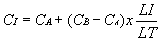 Los cargos de salida CI (capacidad en US$/KPCD-Año) y VI (uso en US$/KPC) en dicho nodo se calcularán a partir de los cargos de salida CA, CB (capacidad en los nodos A y B) y VA, VB (uso en los nodos A y B) mediante la siguiente fórmula: