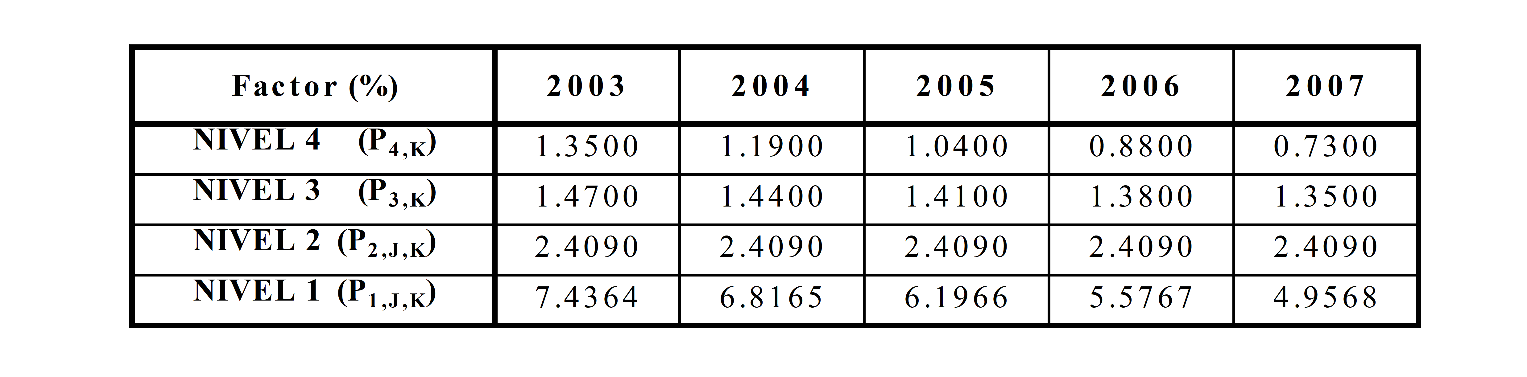 PARÁGRAFO. Los factores de que trata el presente Artículo se aplicarán de acuerdo con la siguiente expresión: