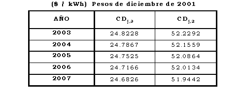 -Cargo de transición para el primer mes de aplicación del Cargo Máximo de Nivel de Tensión 2 aprobado en esta Resolución: 30.0502 $/kWh (pesos de diciembre de 2001).