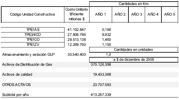 Que la solicitud tarifaria presentada por Proviservicios S. A. ESP, incluye las proyecciones de demanda, las proyecciones de gastos de AOM de distribución y el Programa de Nuevas Inversiones, clasificadas según el listado de unidades constructivas establecido en el Anexo No 1 de la Resolución CREG-011 de 2003;