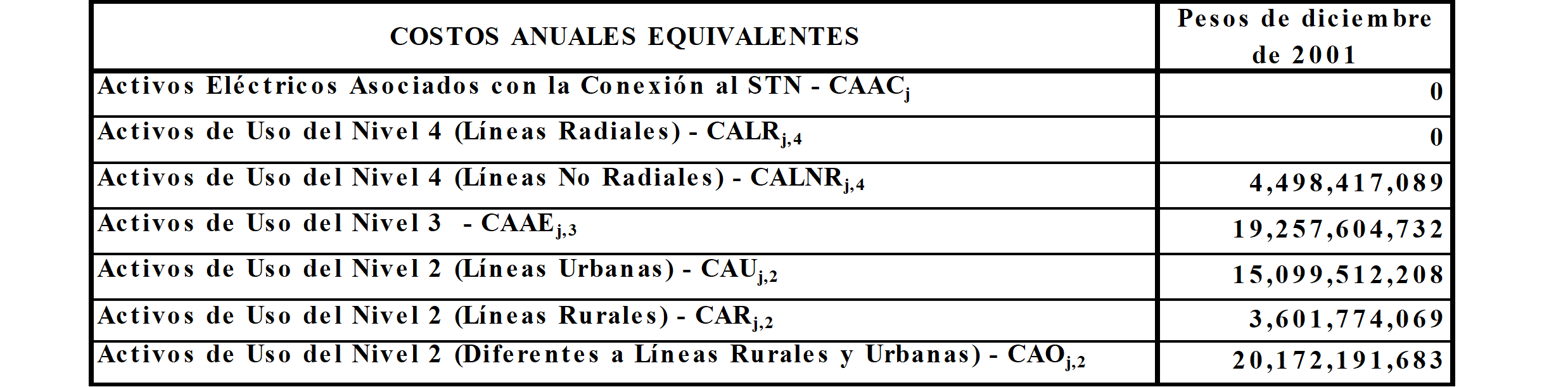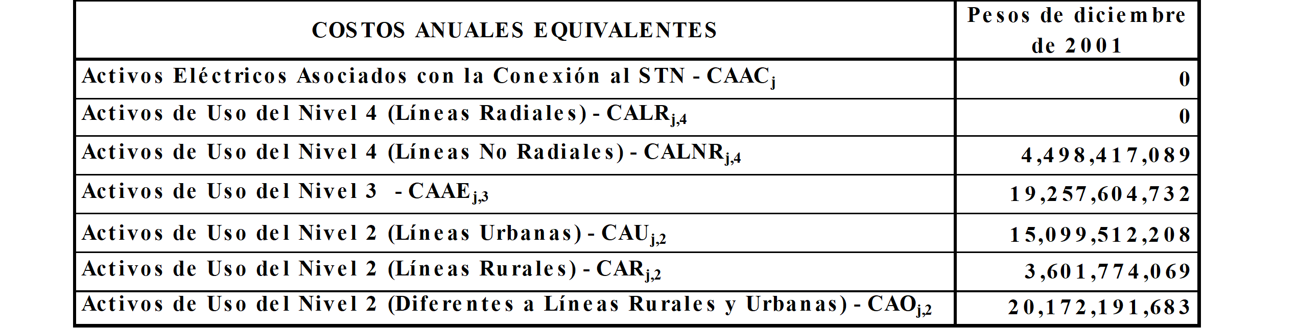 a) Costo anual para remunerar los activos de conexión al STN y los Niveles de Tensión 4, 3 y 2, sin aplicar los criterios de eficiencia de que trata el Anexo No 8 de la Resolución CREG 082 de 2002: