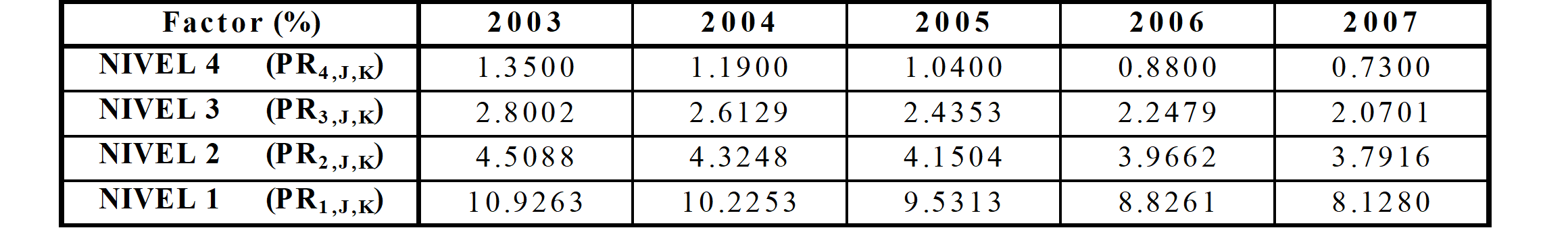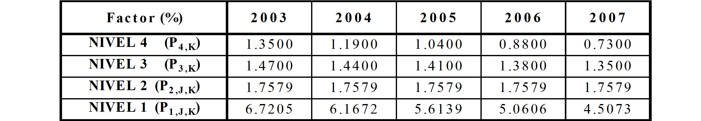 PARÁGRAFO. Los factores de que trata el presente Artículo se aplicarán de acuerdo con la siguiente expresión: