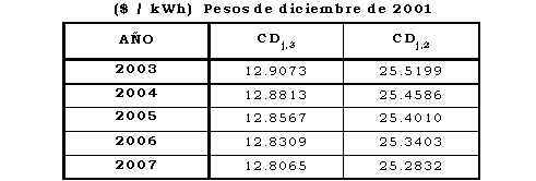 -Cargo de transición para el primer mes de aplicación del Cargo Máximo de Nivel de Tensión 2 aprobado en esta Resolución: 18.09 $/kWh (pesos de diciembre de 2001).