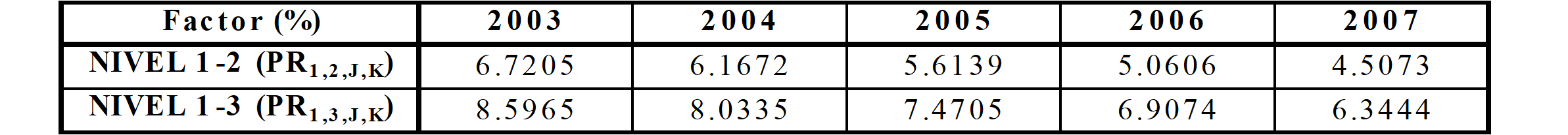 b) Factores para referir las medidas en el Nivel de Tensión 1 a los niveles de tensión 2 y 3: