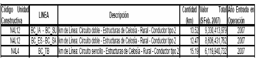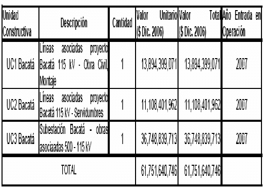 Que en los cuadros anteriores se observa que los costos de la UC de transformadores de conexión al STN y las UC de línea no corresponden con los contemplados en la Resolución CREG 082 de 2002. El cálculo para los demás activos de la subestación Bacatá se efectuó con base en los costos de que trata el Anexo 3 de la Resolución CREG 082 de 2002;