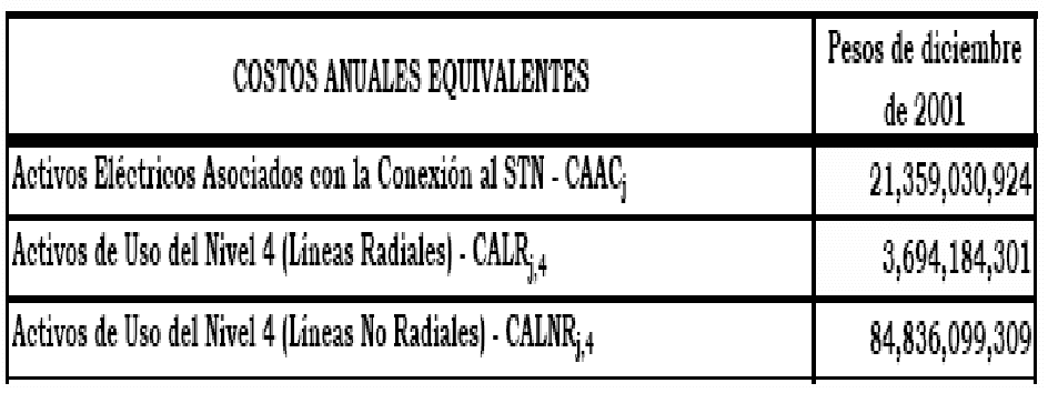 a) Costo anual para remunerar los activos del Nivel de Tensión 4, sin aplicar los criterios de eficiencia de que trata el Anexo No 8 de la Resolución CREG 082 de 2002: