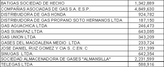 ARTICULO 1o. Las siguientes entidades del sector gas combustible sujetas regulación, cancelarán el monto de la contribución especial, por el año de 1997, así: