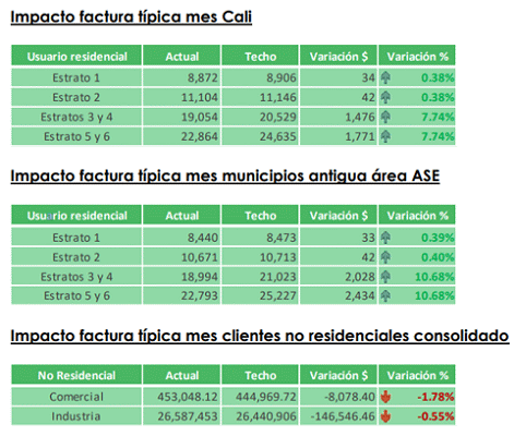 Dichos incrementos son principalmente debidos al precio del gas, que a su vez son definidos de manera unilateral por el Productor según los procedimientos de la Resolución CREG 089 de 2013 (compilada y ajustada en la Resolución CREG 114 de 2017), por las actualizaciones que el mismo regulador ha procurado en contra de la demanda y por la tasa de cambio.