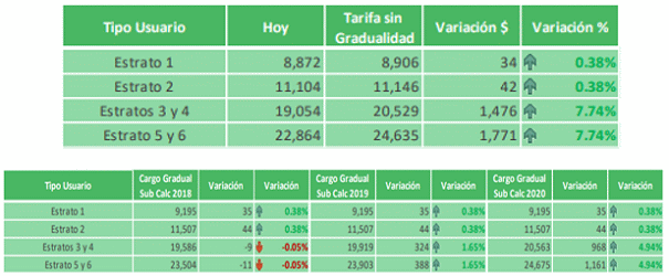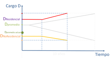 Una proyección de la aplicación de la gradualidad implicaría que, si bien los usuarios residenciales no tendrían un impacto inmediato, el salto tarifario que tendrían los usuarios en dos años sería equivalente al que tendrían que asumir en la actualidad, tal y como se desprende de la siguiente tabla: