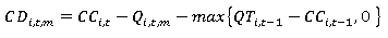 | Capacidad disponible de compra del distribuidor i, para el periodo de compra t, calculada para el mes m, medida en kilogramos. | |