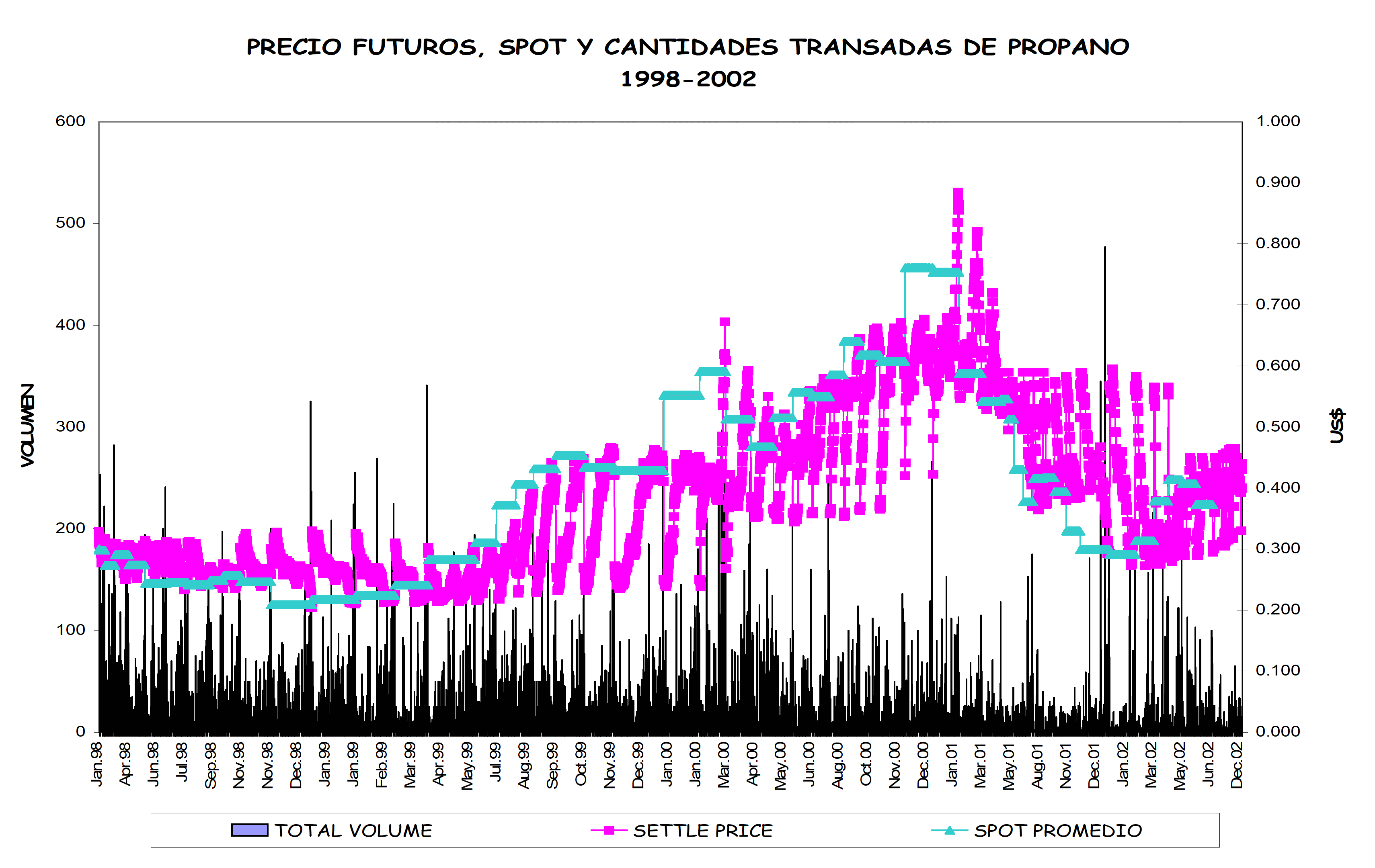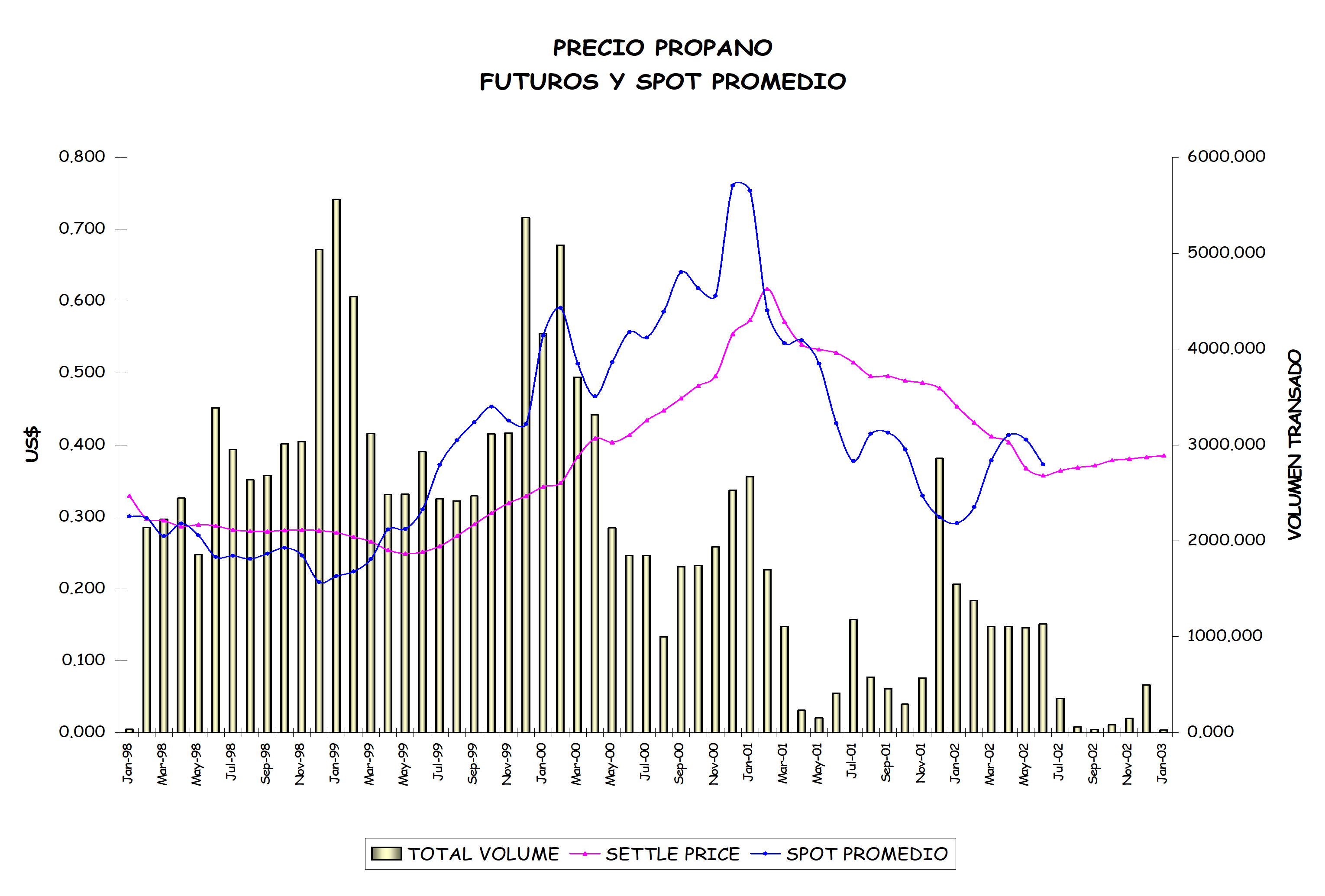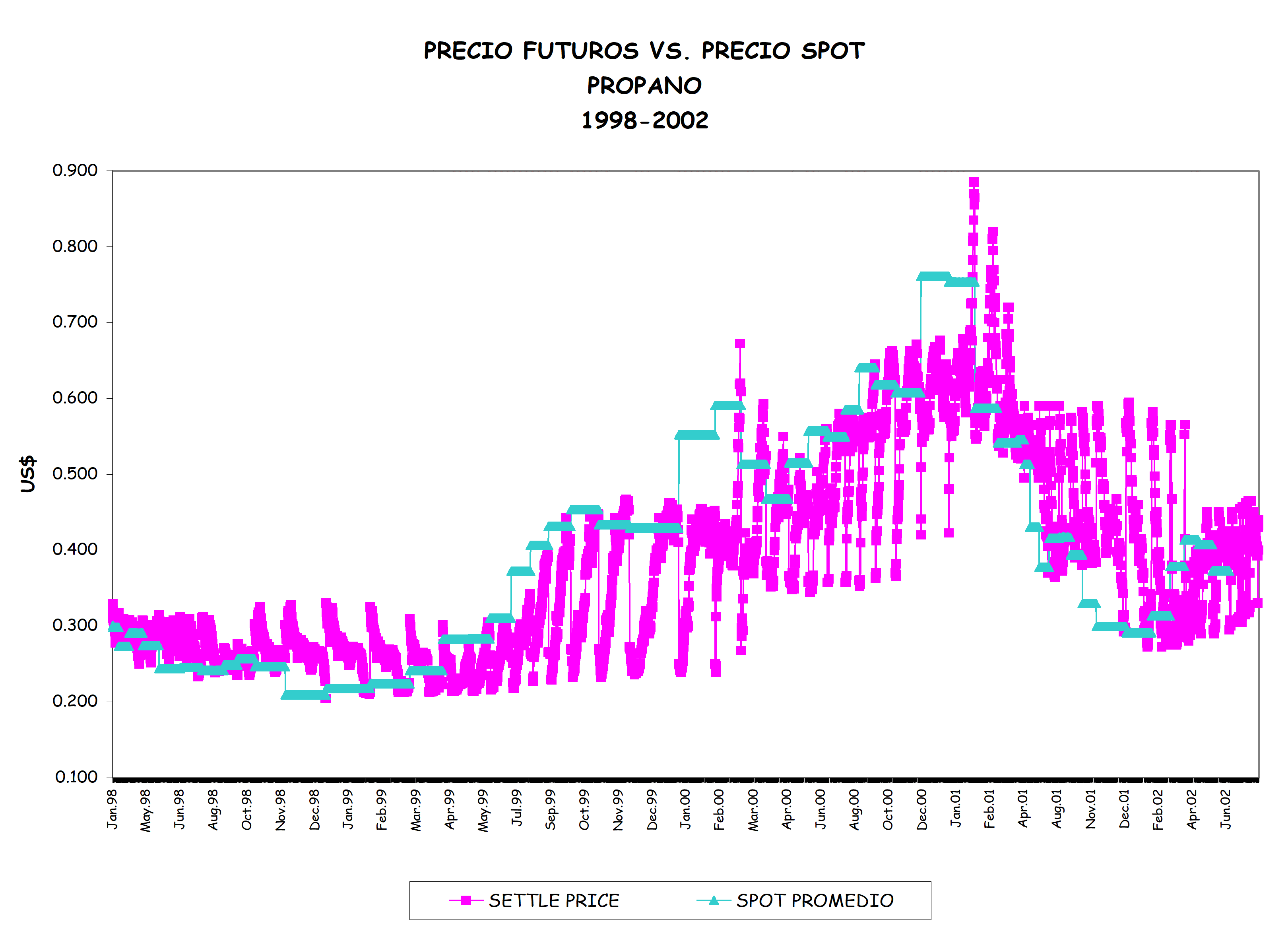 PRECIOS CONTRATOS DE FUTUROS Vs. PRECIO SPOT DE PROPANO