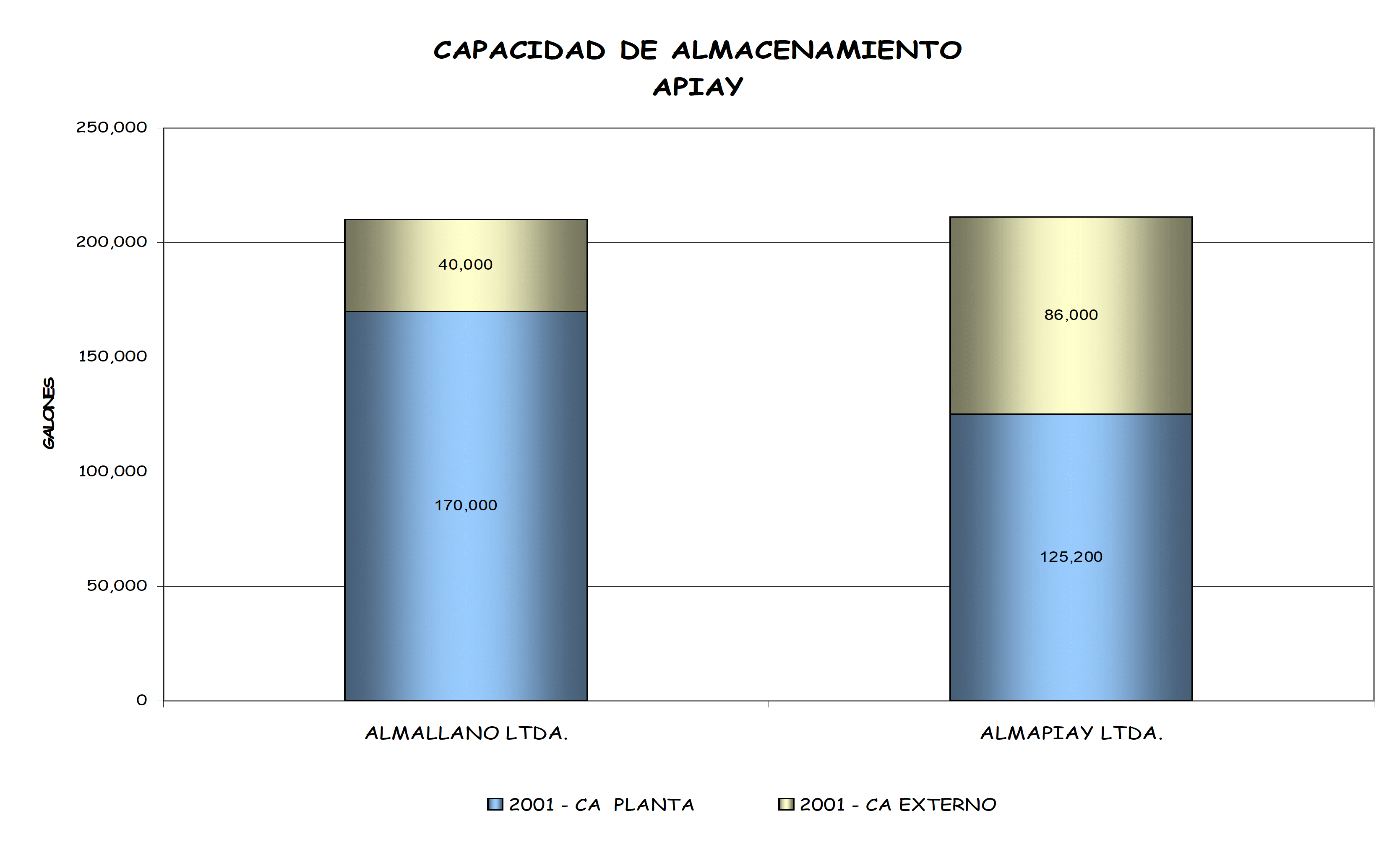 El mayor costo en la actividad de almacenamiento está dado por la inversión en tanques, cuya capacidad total, además, es la que da la dimensión o tamaño de la planta. Los otros elementos requeridos como tubería, medidores, sistemas contraincendio, etc., guardan de alguna manera una relación de proporcionalidad directa con la capacidad instalada de tanques. Esta proporcionalidad también es analizada en términos de la razón de capacidad de cada activo a capacidad en tanques. Por ejemplo: metros de tubería por galón instalado en tanques, metros cúbicos de reserva de agua para contraincendio por galón de almacenamiento, etc.