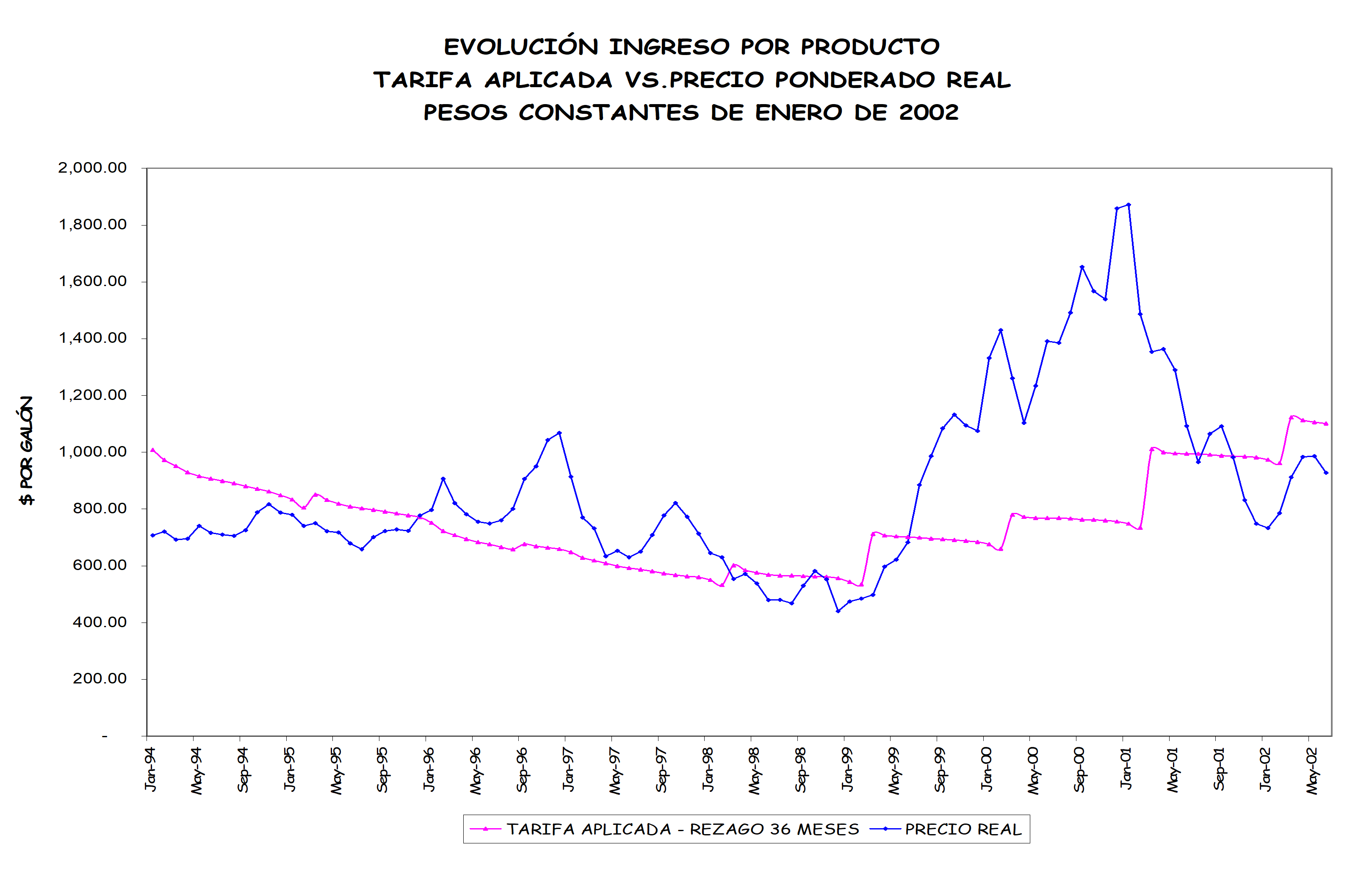EVOLUCIÓN TARIFA APLICADA VS. PRECIO REAL DE GLP EN EL MERCADO NACIONAL
