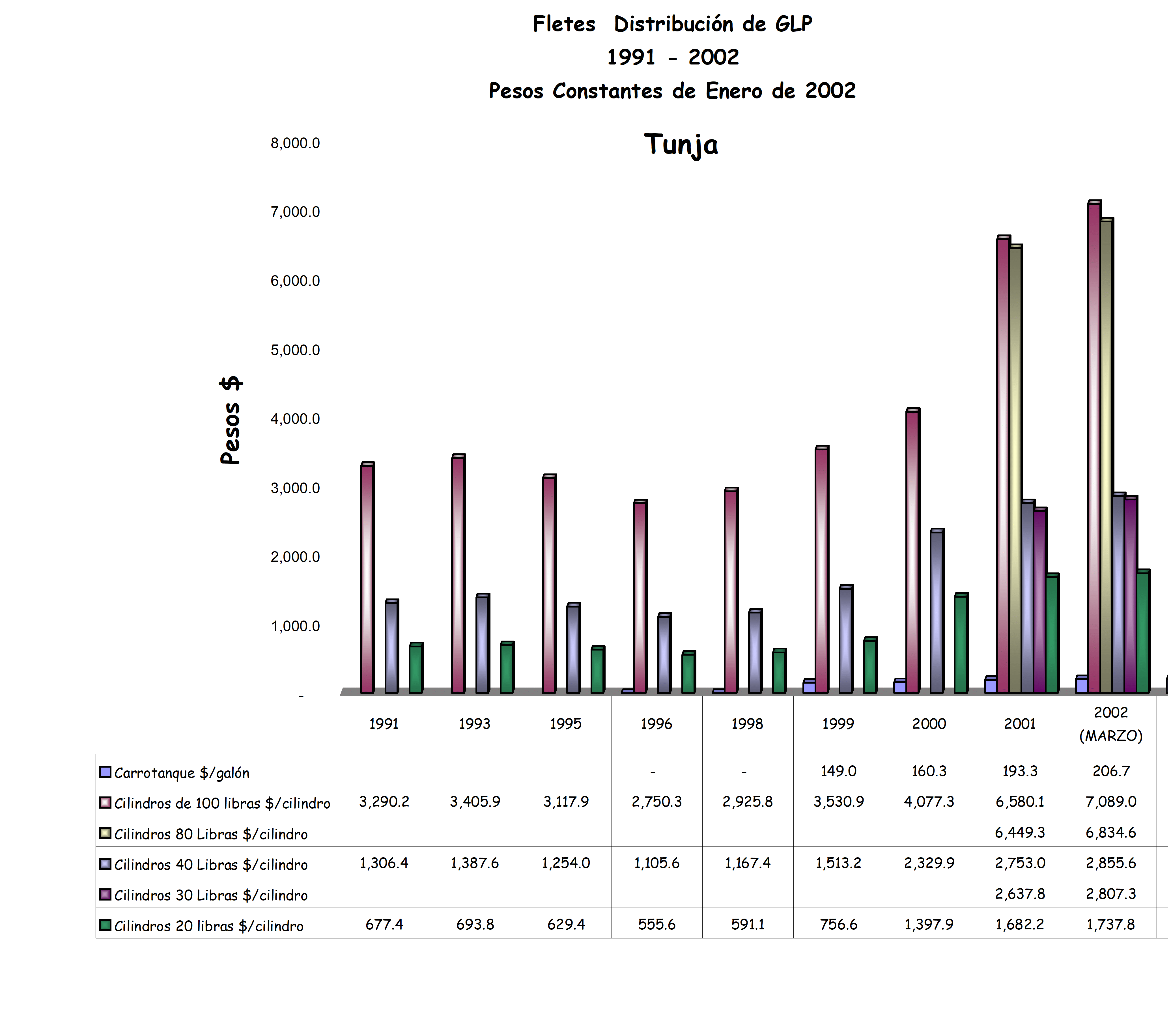 Para los servicios públicos se analiza el comportamiento del costo anual en función del volumen de GLP manejado para estimar una función sencilla que dé un ajuste adecuado, ya que existe una componente fija de costo en el cobro de los servicios y puede existir también un nivel mínimo fijo de consumo en las plantas que producen economías de escala.