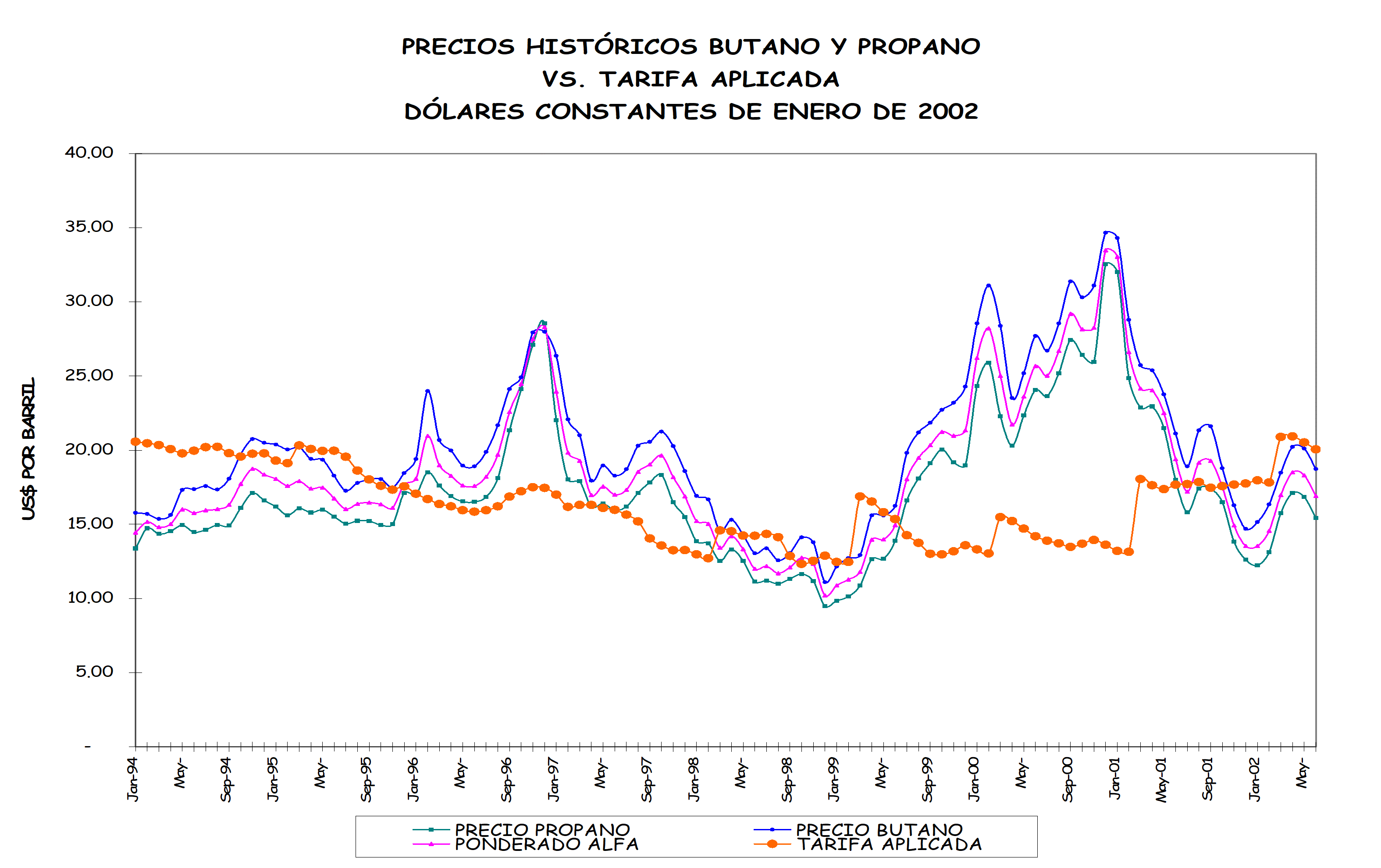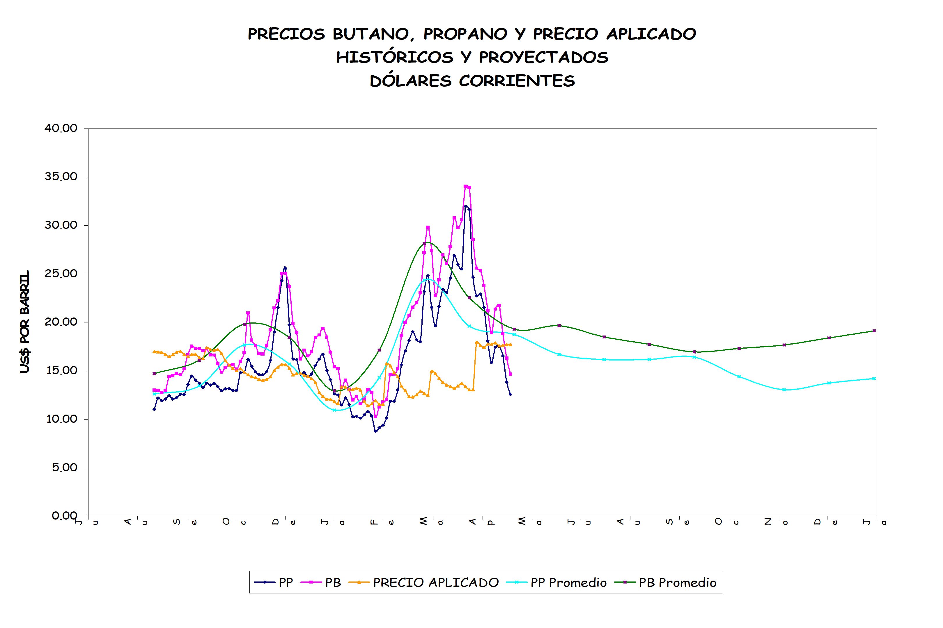 PRECIOS HISTÓRICOS Y PROYECTADOS DEL BUTANO Y EL PROPANO EN EL MERCADO INTERNACIONAL