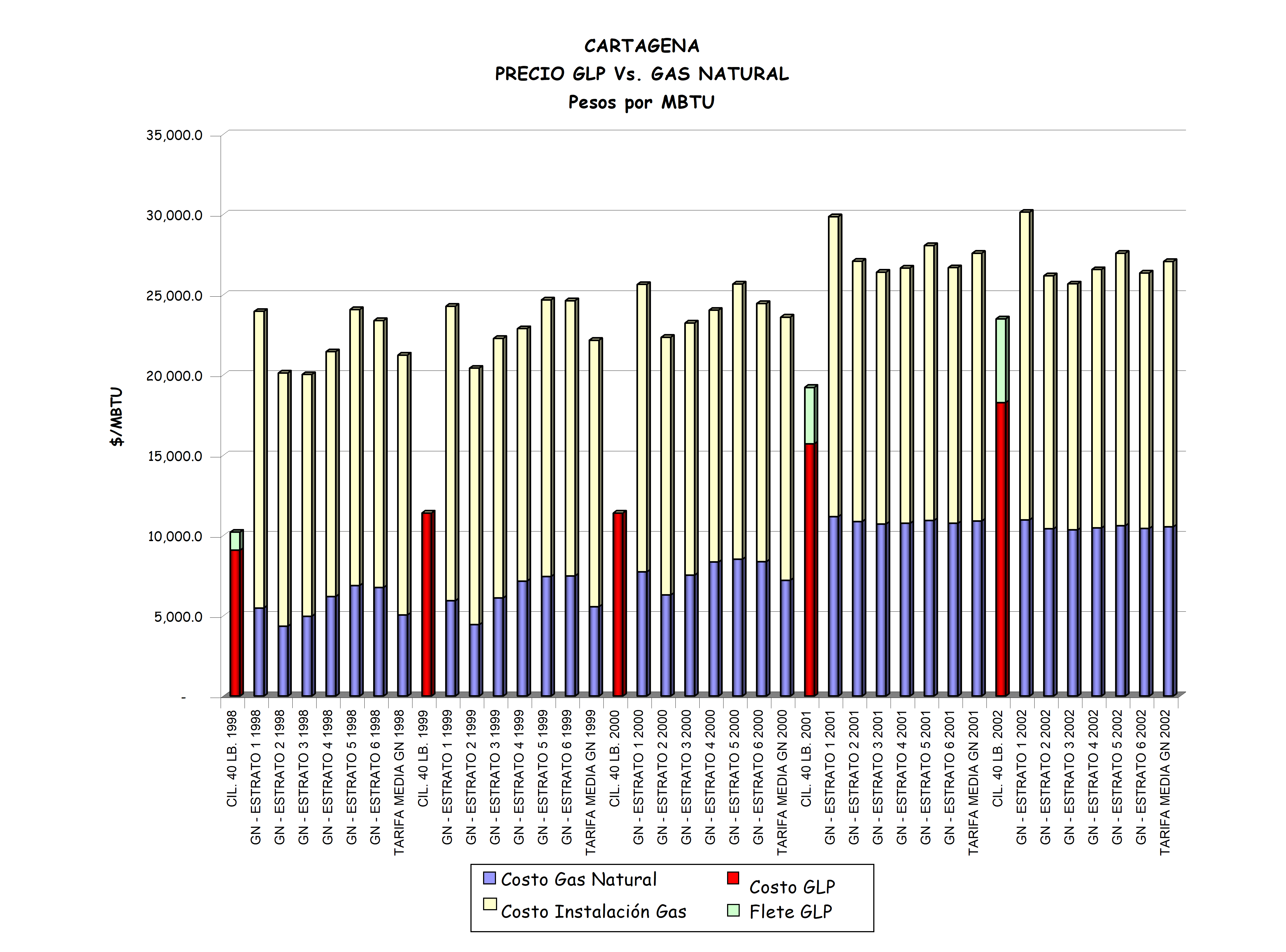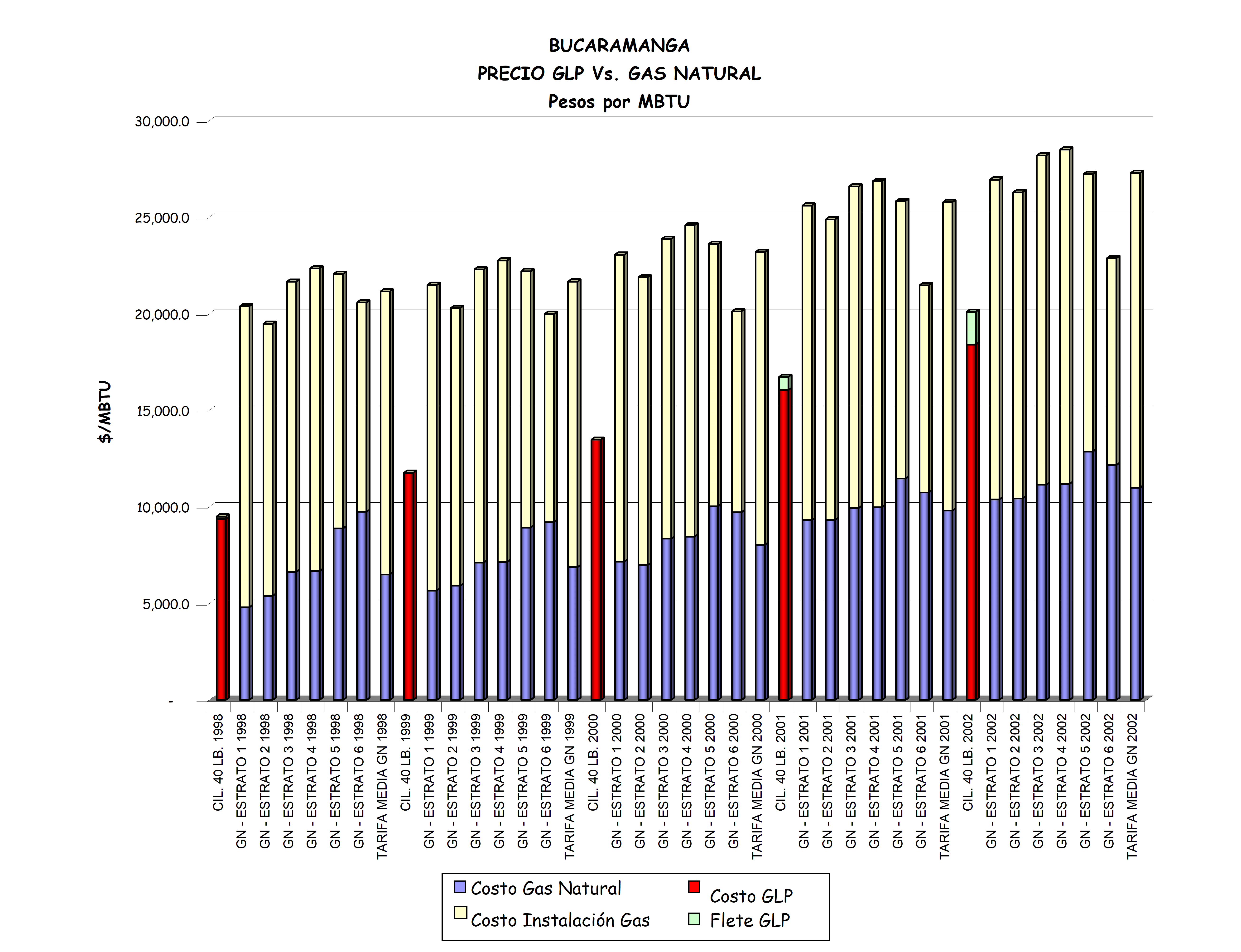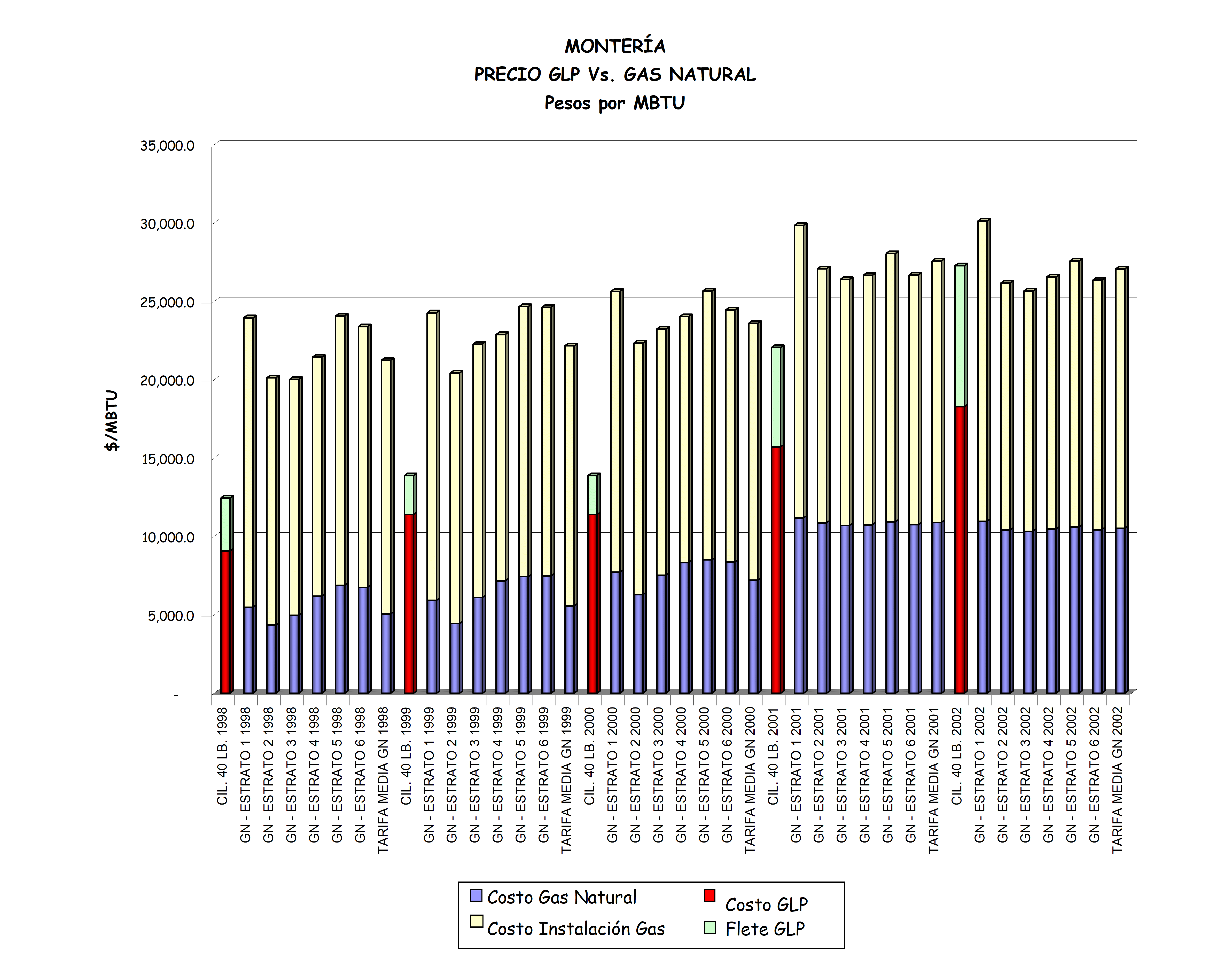 EVOLUCIÓN DEL PRECIO DEL GLP EN MERCADOS NO REGULADOS VS. PRECIO DEL GAS NATURAL $/MBTU.