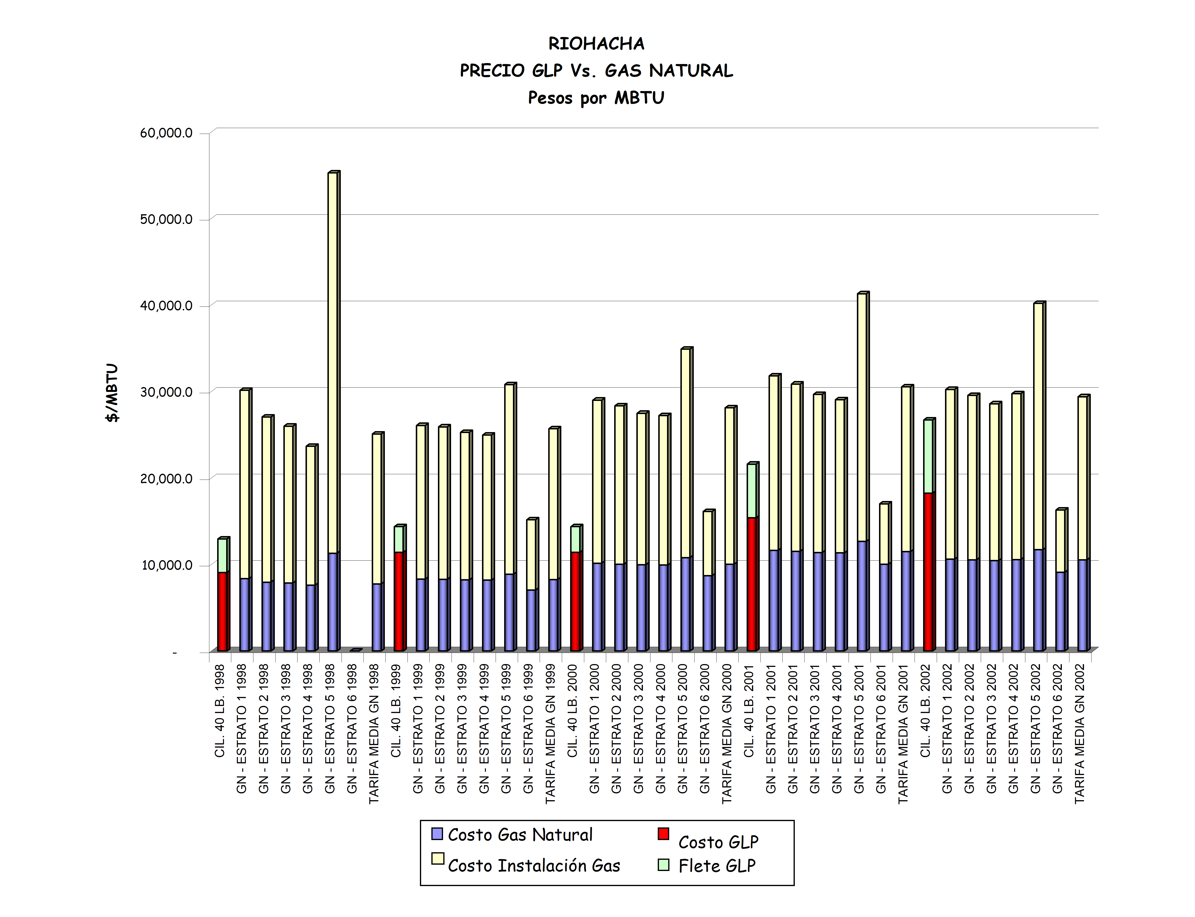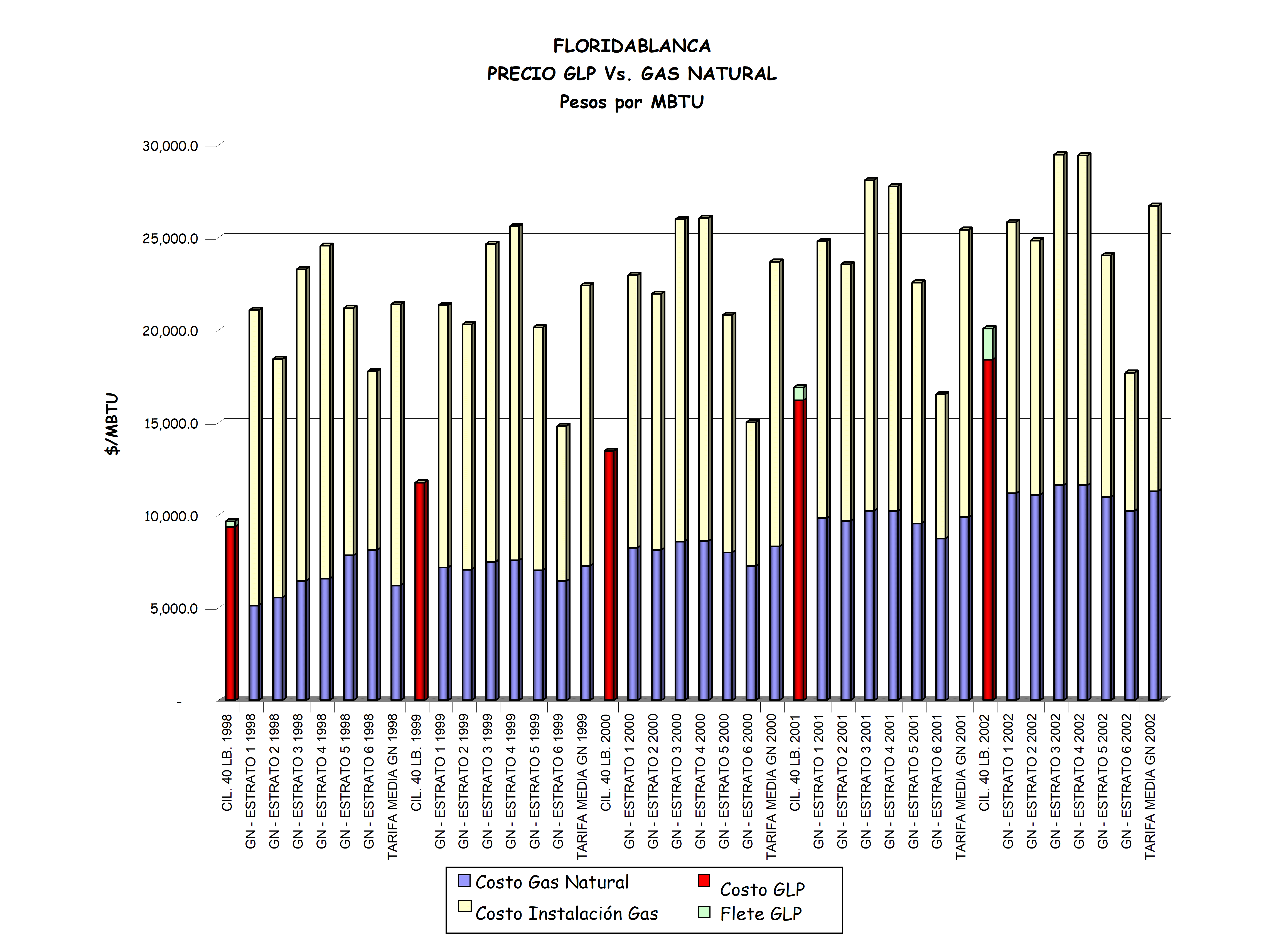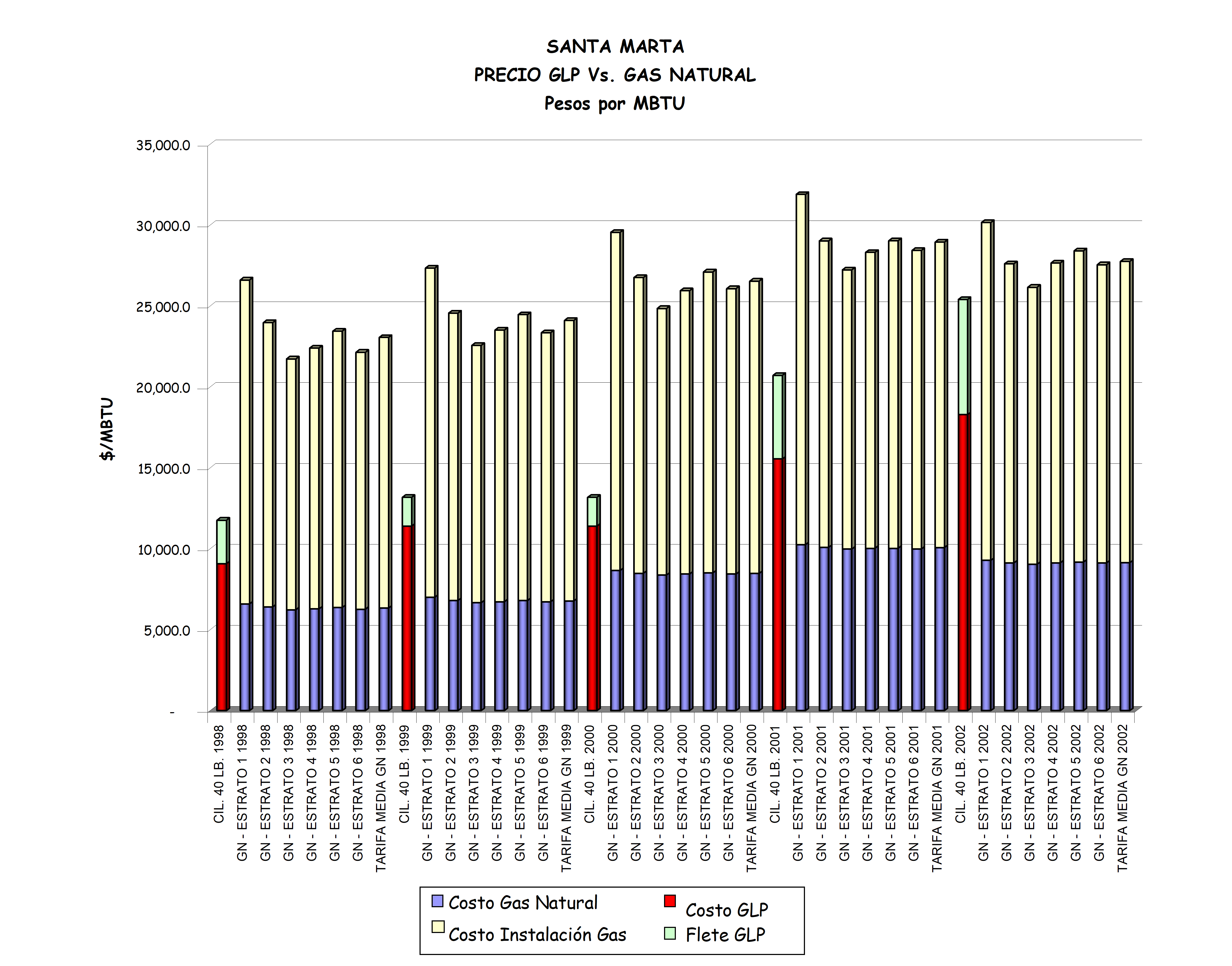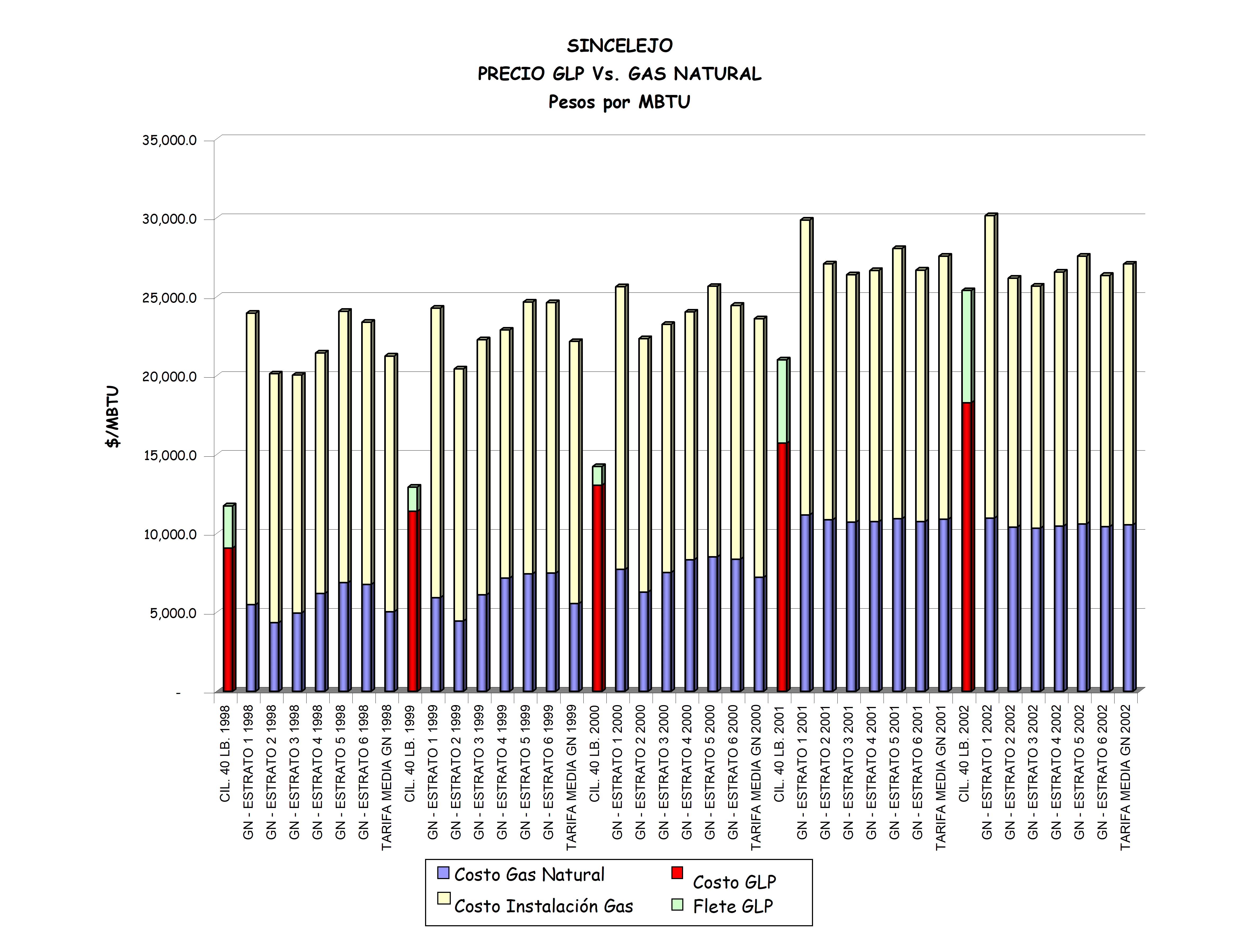 EVOLUCIÓN DEL PRECIO DEL GLP EN MERCADOS NO REGULADOS VS. PRECIO DEL GAS NATURAL $/MBTU.