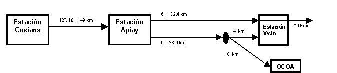 Aunque la planta esta instalada en un tramo de gasoducto entre los nodos de Apiay y Villavicencio, el cargo por uso se tomó como si la planta estuviese en Villavicencio ya que la longitud del tramo Apiay-Villavicencio es de 32.4 kms