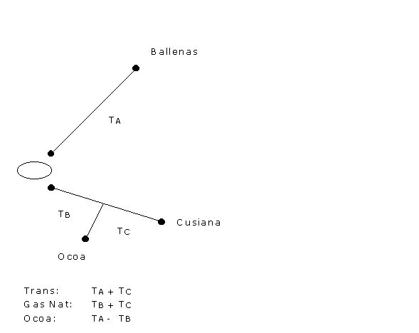 Dicho esquema se construyó a partir de la suma algebraica de los costos por tramos desde cada punto de entrada hasta Vasconia y desde este sitio hasta cada punto de salida.