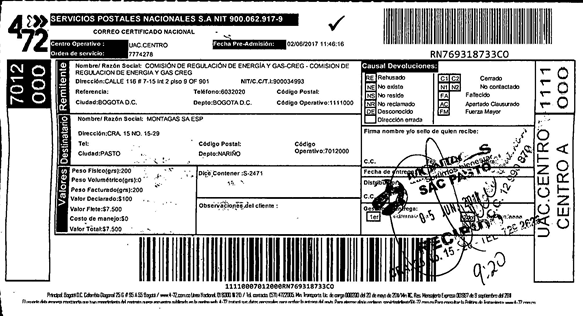 | Montagas S.A. E.S.P. | 40 LIBRAS | 102902 |