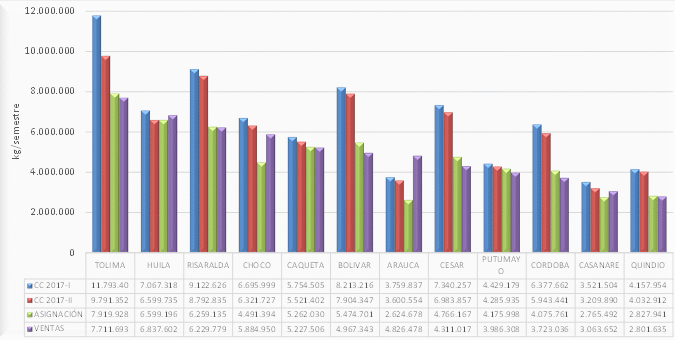 | Capacidad de compra del distribuidor i, para el periodo de compra t, medida en kilogramos. | |