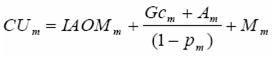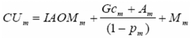 GIAOMm: Remuneración de la inversión y de los gastos de AOM en generación, para el mes m. En estos gastos no se consideran los combustibles de origen fósil, o las mezclas obligatorias de estos con biocombustibles por disposición gubernamental, utilizados en la operación. Este valor, expresado en pesos por kilovatio hora ($/kWh), se estimará así: