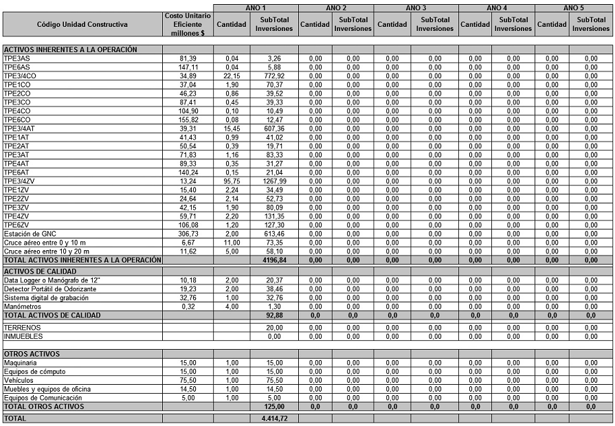 La Empresa, mediante la comunicación en mención, presentó las proyecciones de gastos de AOM de distribución y el programa de nuevas inversiones, clasificadas según el listado de unidades constructivas establecido en el Anexo número 1 de la Resolución CREG 011 de 2003.