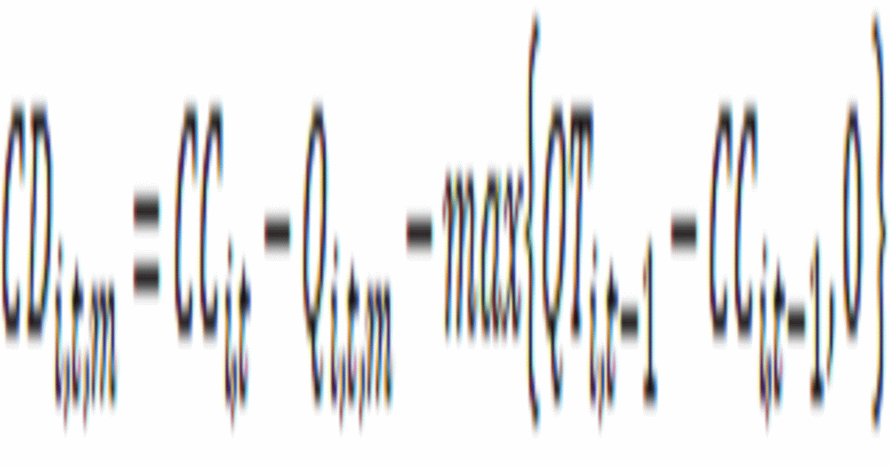 | Capacidad disponible de compra del distribuidor i, para el periodo de compra t, calculada para el mes m, medida en kilogramos. | |