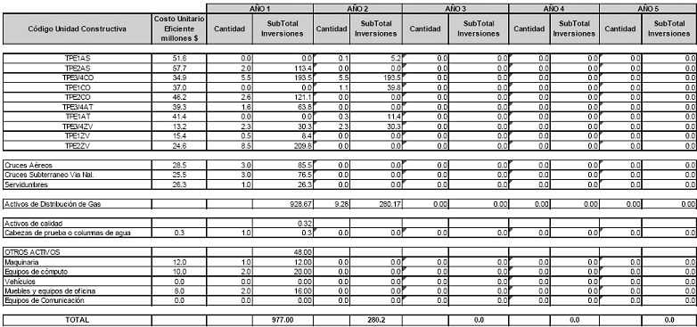 La Empresa, mediante la comunicación en cita reportó a la CREG las proyecciones de demanda, las proyecciones de gastos de AOM de distribución y el programa de nuevas inversiones, clasificadas según el listado de unidades constructivas establecido en el Anexo número 1 de la Resolución CREG 011 de 2003.