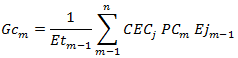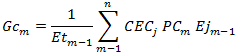 | Gcm: | Precio regulado compuesto por los costos de los combustibles de origen fósil o de las mezclas obligatorias de estos con biocombustibles por disposición gubernamental, puestos en el sitio de operación de las plantas del parque de generación, para el mes m. Este valor, expresado en pesos por kilovatio hora ($/kWh), se calculará así: |