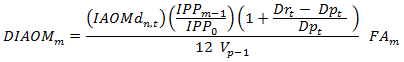 | IAOMm: | Precio regulado para el mes m del período de vigencia de la obligación de prestación del servicio, que remunera al prestador del servicio las inversiones y los gastos de administración, operación y mantenimiento requeridos para las actividades de generación, distribución en el nivel de tensión n y comercialización. Este precio, expresado en pesos ($) del mes anterior al de la realización del proceso competitivo, será el ofertado por el adjudicatario de la obligación de prestación del servicio en la propuesta que presente en dicho proceso. |