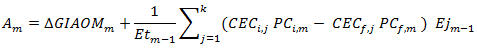 | GIAOMm: | Diferencia en el ingreso regulado o precio máximo regulado compuesto por los costos de inversión y los gastos de administración, operación y mantenimiento en generación, para el mes m, debido al cambio de tecnología calculado por el adjudicatario de la obligación de prestación del servicio. |