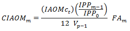 | IAOMct: | Ingreso regulado para el año t del período de vigencia de la obligación de prestación del servicio, que remunera al prestador del servicio las inversiones y gastos AOM requeridos para desarrollar la actividad de comercialización. Este ingreso, expresado en pesos ($) del mes anterior al de la realización del proceso competitivo, será el ofertado por el adjudicatario de la obligación de prestación del servicio en la propuesta que presente en dicho proceso. |